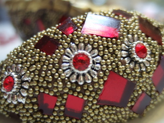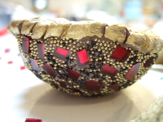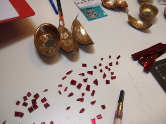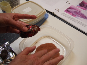 Here she is applying her first coat of beads...