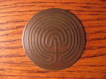 While looking at the rope labyrinth, as we adjusted it to fit the space and deciding where the entrance would be, Catherine told me a story. Many years ago she was at a faire and purchased a hand and machine stamped copper labyrinth. She placed it upon the headboard of her bed and every night before going to sleep, she traced the path and whispered her heart's desire... to find her true love...