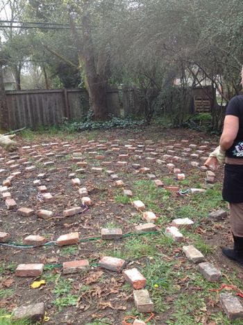 That was also about the time that Catherine turned to me and said, "I have all the old bricks from the foundation of my daughter's house that was damaged in the 1989 Loma Prieta earthquake. Could we use those bricks for the lines of the labyrinth?"