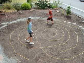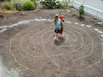 But first, the girls, Ulla's daughter Rowan and our dear friend Lucille's daughter Nash, ran the rope labyrinth in our front yard...
