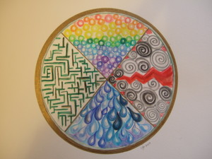 These emotions now have a deeper meaning for me. For example, when angry, looking for where I need more fire-South energy in my life, or where I need to focus that bolt of energy. For sadness, where I need to allow the flow of water, the ways of the West to assist me in releasing, allowing cleansing water, through tears or immersing my body in water, to help me move through all the stages of sadness. For happiness, where I can breathe in the air, and the new beginnings of the East, releasing my laughter and joy. For fear, where the maze that traps my mind opens up to reveal the labyrinth path through the Earth, trusting the wisdom of my body as it explores the terrain of the North.
