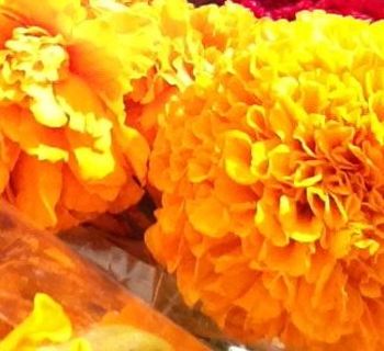 With another woman from my group we approached two graves that had no one gathered round and began to pull weeds and place the bright orange marigolds upon the tiny dirt mounds before us. No cement or rod iron gates separating us from the remains of these young lives returning to the earth… At another grave, a village woman knelt with me, and together we pulled weeds and she showed me how to brush the dirt with a broken tree branch. I then placed my bright sun-gold flowers upon this un-marked grave…