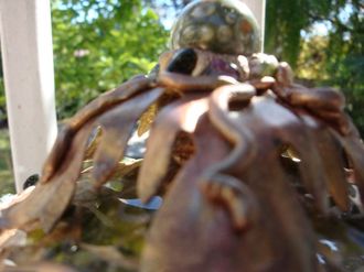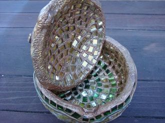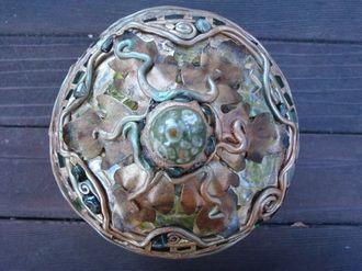 By the way... I finished my magic box made from a gourd, apoxie sculpt, mirrored tiles, tempered glass, paper, iron sconce, jasper, and tourmaline!