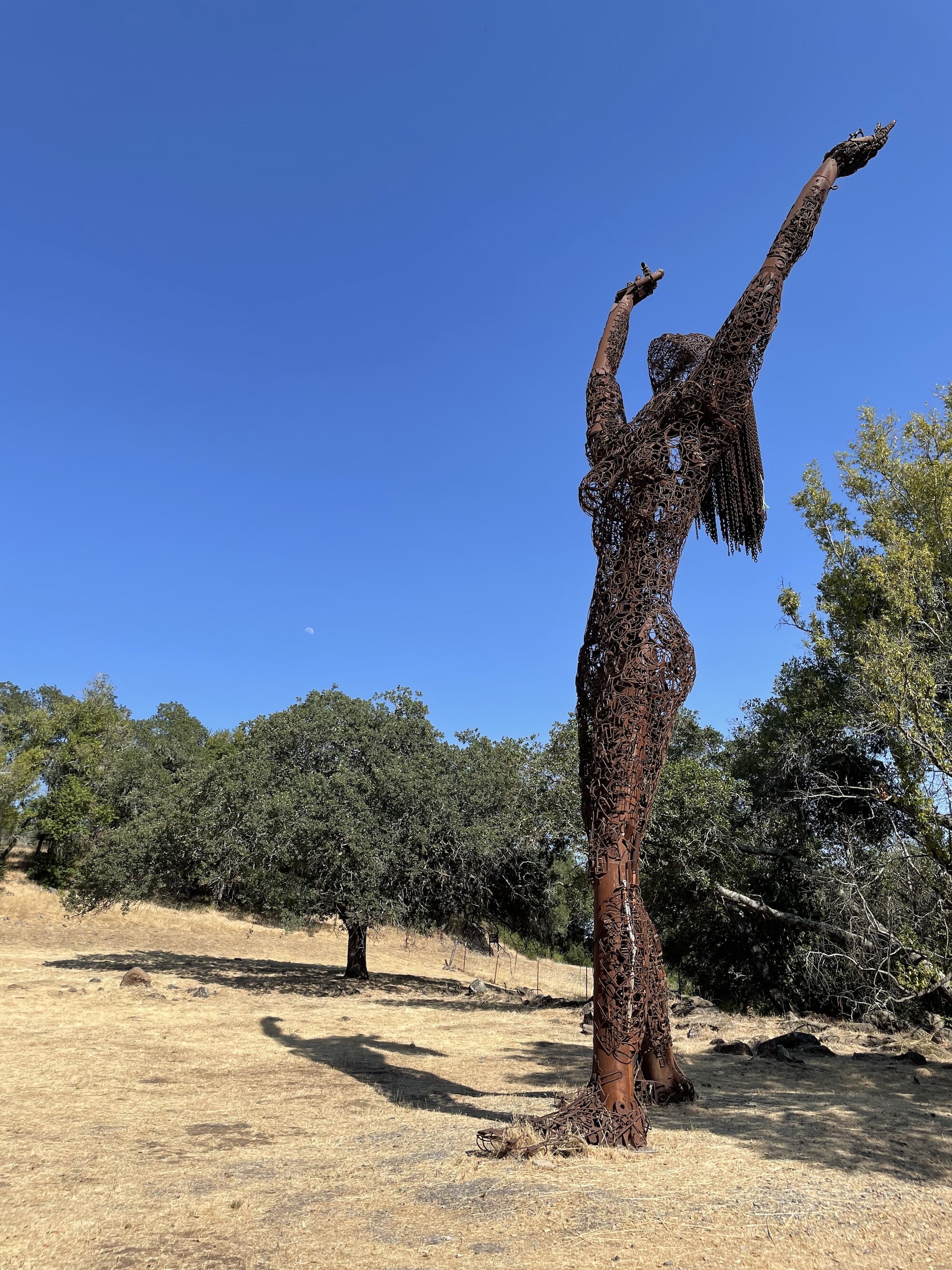 Sculpture from Paradise Ridge Winery, Santa Rosa, CA and the waxing moon